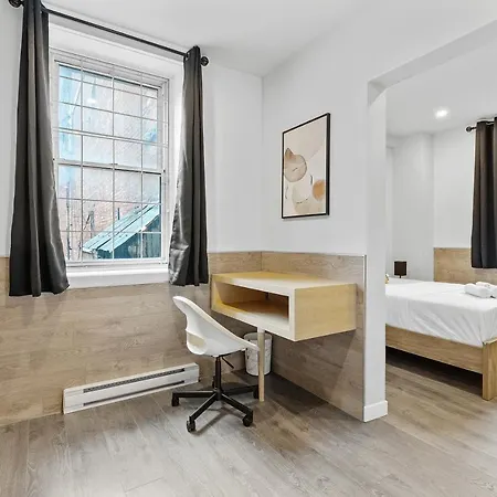 都市の景色を望むLe Sand & Stone Hotel モントリオ-ルは,エコミュゼ デュ フィエ モンドから車で5分くらいの場所に位置しています. モントリオ-ルにあるホテルは専用駐車場もあります.